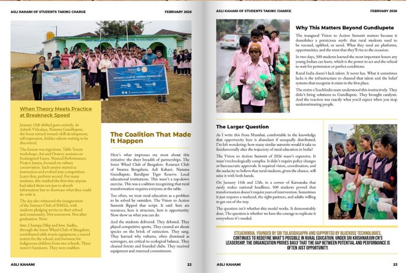 February 20, 20260 Comments Vision to Action: Bandipur 2026 At Bandipur’s edge, eTeachlndia’s Vision to Action Summit of 2026 proved that transformation isn’t taught, it’s triggered. Share This Post: